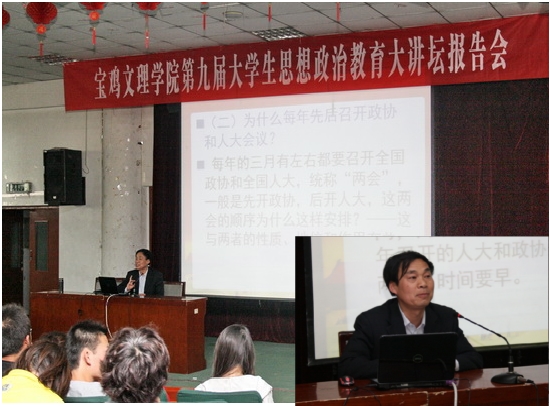 4月11日下午,第九届“大学生思想政治教育大讲坛”系列报告会开讲,学科建设与研究生教育管理处处长吴毅教授在新校区木铎厅为大学生作了题为《树立崇高理想、实现人生价值》的报告,哲学系党总支书记张全省教授在老校区二号学术报告厅为大学生作了题为《2012年“两会”精神解读》的报告。两位教授的报告内容翔实、深刻生动、深入浅出,他们以广博的知识、开阔的视野赢得了现场师生的阵阵掌声。报告结束后,他们还与学生进行了交流,回答学生提出的问题。对学生进一步把握人生,认识社会具有重要的指导意义。