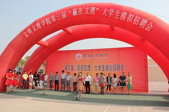 6月2日上午,我校第三届“赢在文理”大学生模拟招聘会在新校区拉开帷幕。经济管理系党总支书记吕陇平,党委学工部副部长刘景世,党委学工部副部长、团委书记黄玮,学生处副处长、毕业生就业服务指导中心副主任郝晓炜,宝鸡人才网总经理汪礼杰,团委副书记党建波及各系团总支书记和部分系负责就业的辅导员参加了开幕式。
