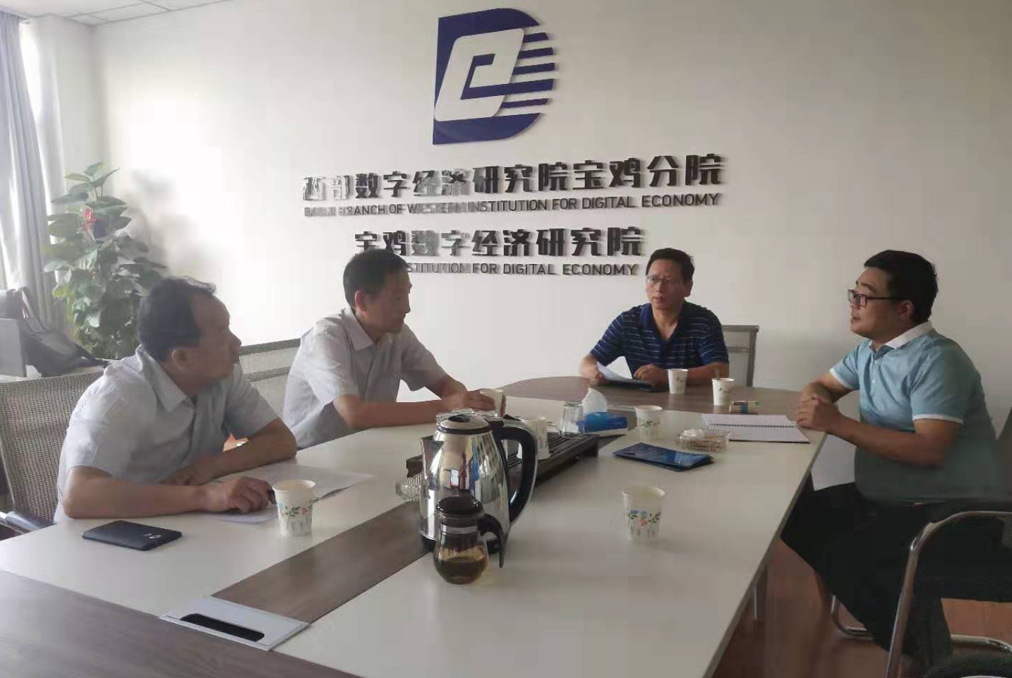 8月7日,宝鸡市农业农村局副局长张国栋、办公室主任张小强等一行3人来宝鸡数字经济研究院考察调研。刘鹏辉介绍了研究院在科研状况、校企合作、发展前景等方面的情况。张国栋要求研究院和计算机学院进一步做好智慧农业的科学研究。最后,双方就西部生态农业新零售发展大会筹备情况进行了座谈。