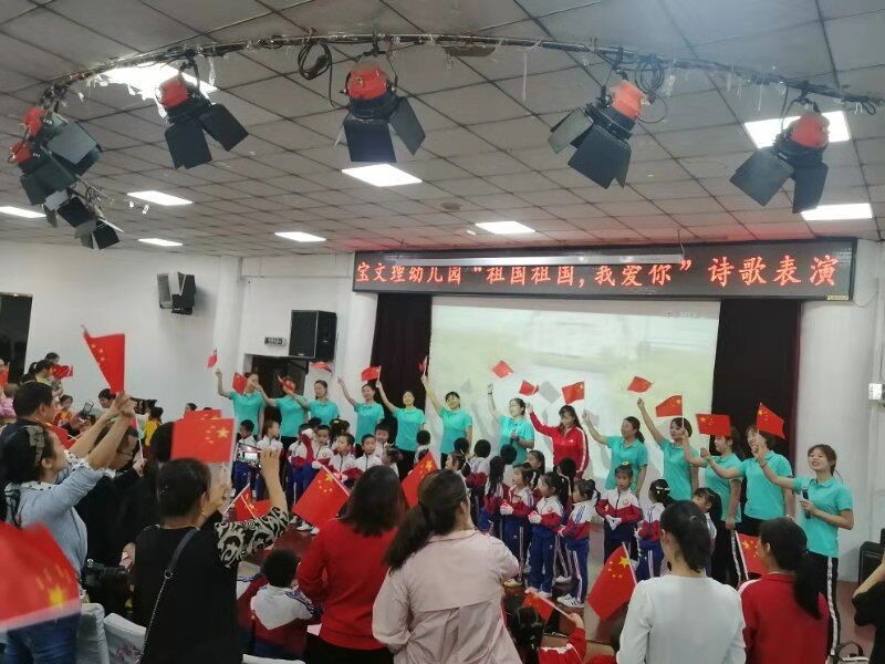 9月30日上午,我校幼儿园承办的庆祝中华人民共和国成立70周年“祖国祖国,我爱你”诗歌表演在石鼓校区综合楼举行。幼儿园全体幼师、儿童和家长400余人观看了表演。