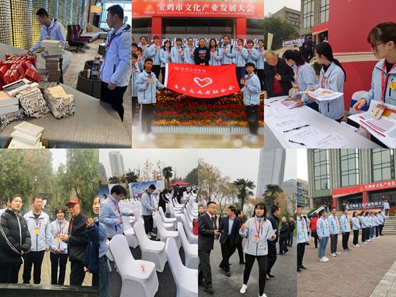 2019年11月8日—9日,由陕西省文化和旅游厅,省文物局,宝鸡市委、市政府主办的宝鸡市文化产业发展大会在宝鸡市文化艺术中心举行。根据大会组委会要求,我校选派了82名青年学生投身于大会志愿服务工作当中,出色地完成了各项服务任务,为大会圆满召开和地方经济社会发展贡献了文理力量。