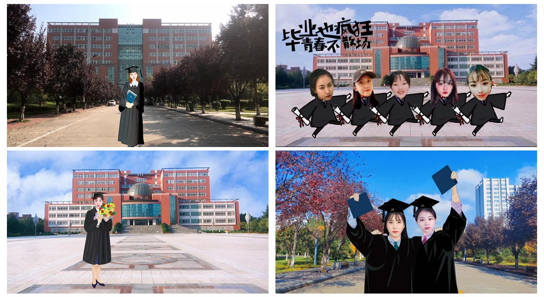 学院精心策划,成立了创作团队,在教师包文瑞的指导下,依托课堂教学,组织低年级学生利用图形制作软件完成了15个毕业班的“云”合影及个性毕业照。一方面从实践教学角度锻炼了低年级的同学软件操作能力和设计思维,另一方面增进了不同年级同学之间的相互交流,进一步激发了美术学院团结奋进、朝气蓬勃的凝聚力。同时,面向全体毕业生,同步开展了个性毕业照创作征集活动。灵感迸发的画室、挥汗如雨的操场、魂牵梦绕的食堂、哭过笑过的宿舍,每一个场景都是一份值得留恋的记忆,都留下了他们的“身影”。