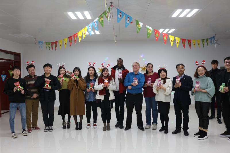 圣诞晚会以“满载西方佳节、传承中国文化,”为主题,漂亮的圣诞树、美味可口的圣诞夜美食(各国外教自制的传统美食和甜酒)、中国功夫表演、圣诞歌曲合唱、各国游戏活动等,营造出了浓厚的节日气氛。在欢歌热舞环节中,圣诞老人将新年祝福送到每个人手中,赢得了阵阵掌声。