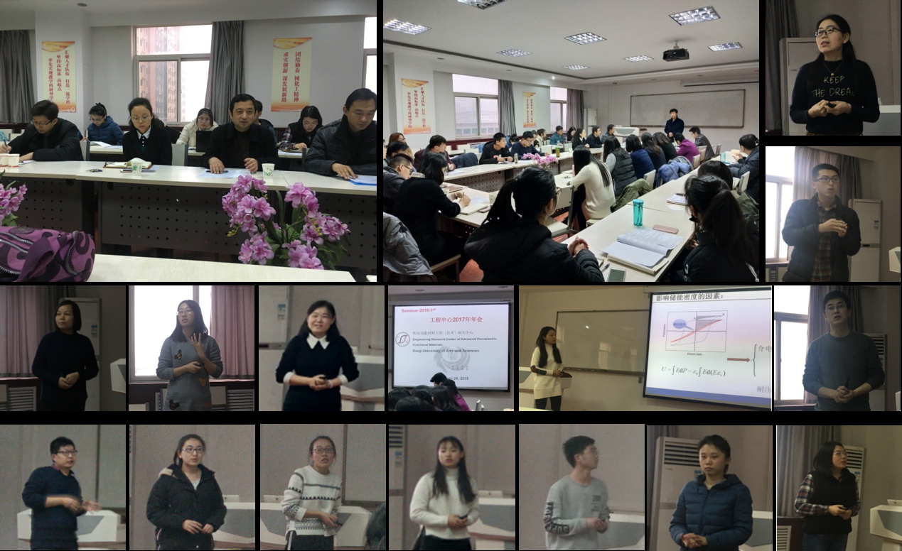 本次年会学术会议内容丰富精彩,会议早上8:30开始,持续到晚上19:10结束,工程中心教师、硕士研究生及本科生代表共作了23场学术报告,报告水平较往年明显提升,内容涉及新材料制备与应用、新能源开发等领域,钙钛矿铁电、压电、介电材料以及具有异质界面的纳米复合材料成为研究热门。报告人和与会者,针对有关科学问题展开了热烈的讨论和深入的交流。其中马蓉博士所作的题为《具有双层“芯-壳”结构Ba0.8Sr0.2Zr0.1Ti0.9O3基细晶陶瓷的制备及介电和储能性质的研究》的报告、顾红溪博士所作的题为《Highly Efficient, Near-infrared and Visible-light Modulated Electrochromic Devices Based on Polyoxometalates and W18O49 Nanowires》的报告、张改妮博士所作的题为《电极材料的制备及柔性器件组装》的报告、硕士研究生李平所作的题为《学期汇报》的报告反响很大,化学化工学院2015级化学专业本科生朱琳、宋文敏所作的《新能源汽车用电极材料钛酸锂晶体的可控开发》的报告引发热议并受到好评。(化学化工学院、铁电功能材料工程(技术)研究中心 文/翟乐 图/张珍)