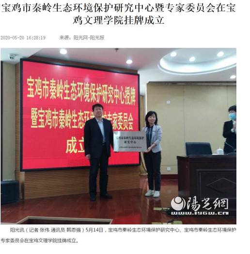 四、宝鸡市秦岭生态环境保护研究中心暨专家委员会在我校挂牌成立