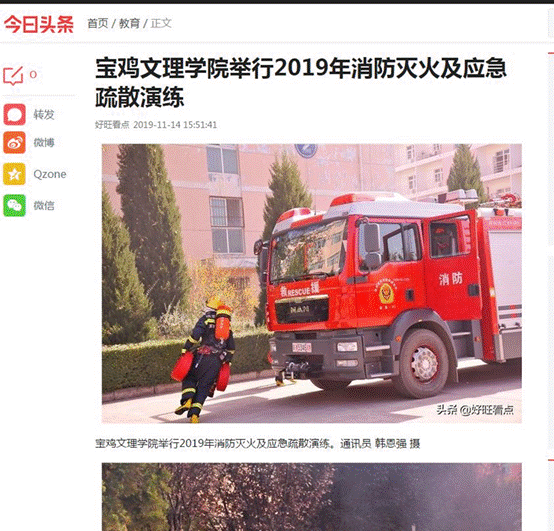 三、11月14日 宝鸡文理学院举行2019年消防灭火及应急疏散演练