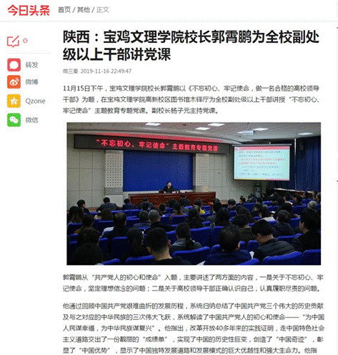 二、11月16日《陕西:宝鸡文理学院校长郭霄鹏为全校副处级以上干部讲党课》