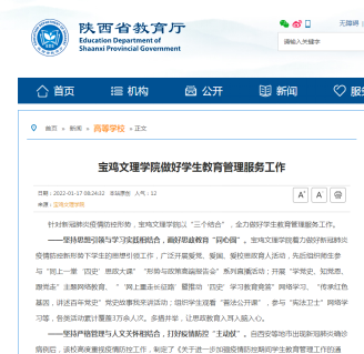 近日,我校做好学生教育管理服务工作、学习贯彻党的十九届六中全会精神、看望慰问杰出校友亲人等活动引起省教育厅网站、陕西日报、中国城市报、今日头条等多家媒体的广泛关注和报道。