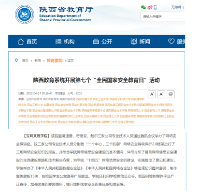 近日,我校开展“全民国家安全教育日”活动、大学生无偿献血、我校荣获2021年度“双百工程”先进单位等活动引起教育厅网站、三秦都市报、今日头条等多家媒体的广泛关注和报道。