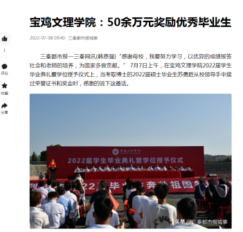 近日,我校奖励优秀毕业生、教师外语教学大赛获一等奖、夏日送清凉等活动引起三秦都市报、今日头条、西部法制报、陕西农村网等多家媒体的广泛关注和报道。