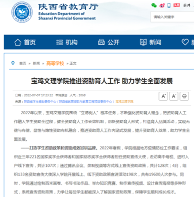 近日,我校推进资助育人工作助力学生全面发展、举行2022届学生毕业典礼暨学位授予仪式、大学生暑期社会实践出征仪式等活动引起教育厅网站、学习强国、今日头条等多家媒体的广泛关注和报道。