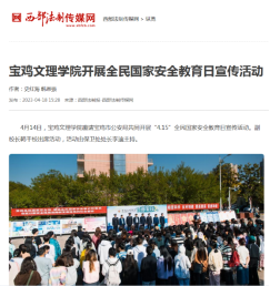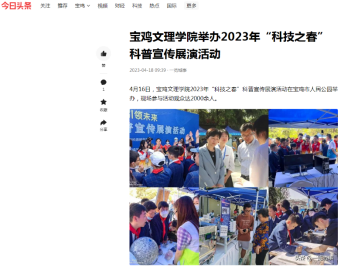 近日,我校举办2023年“科技之春”科普宣传展演活动、开展世界防治结核病日主题活动等,引起省教育厅网站、陕西日报、今日头条、西部法制传媒网等多家媒体的广泛关注和报道。
