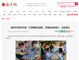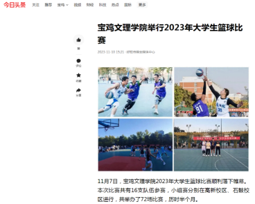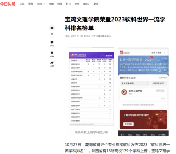 近日,我校开展全国消防日活动、荣登2023软科世界一流学科排名榜单、无偿献血传爱心等活动,引起陕西教育厅网站、宝鸡日报、今日头条、阳光网等多家媒体的广泛关注和报道。