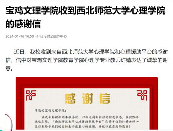 七、收到西北师范大学心理学院的感谢信