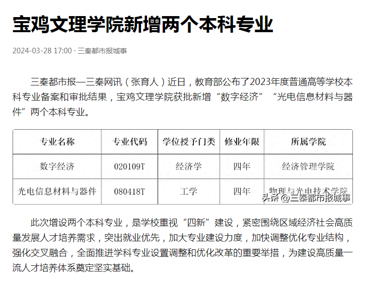二、新增两个本科专业