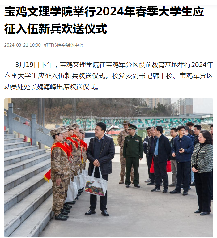 五、举行2024年春季大学生应征入伍新兵欢送仪式