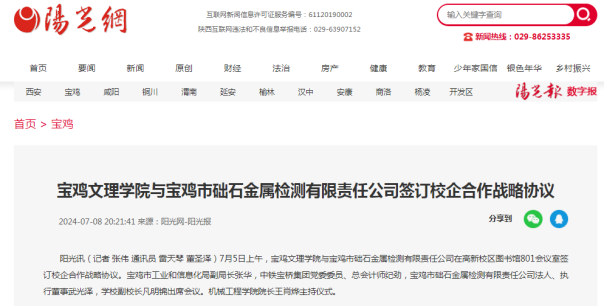 四、与宝鸡市础石金属检测有限责任公司签订校企合作战略协议