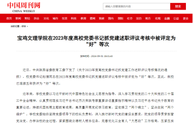 近日,我校在2023年度高校党委书记抓党建述职评议考核中被评定为“好”等次、全力做好防汛抢险救灾工作、校领导开展资助帮扶走访活动、推出纪念邓小平诞辰120周年红色音乐党课、赴新疆阿克苏地区柯柯牙镇开展推普助力乡村振兴暑期社会实践志愿服务、马克思主义学院教授王红梅《深化思政课改革 讲好中国式现代化故事》采访视频、举办文学与传播学科专业建设研讨会、大学生暑期社会实践活动走进铜川:感悟思想伟力赓续红色血脉、马克思主义学院研学之旅、实践团入选2024年绿色长征科考实践活动专项团队、承办第五届“芝勇杯”工程测量技能竞赛、在全国大学生数据分析大赛中获奖等活动引起中国周刊网、陕西省教育厅、学习强国、党建头条、宝鸡融媒体中心、陕西科技传媒网、起点新闻、今日头条——好旺传媒等多家媒体广泛关注和报道。