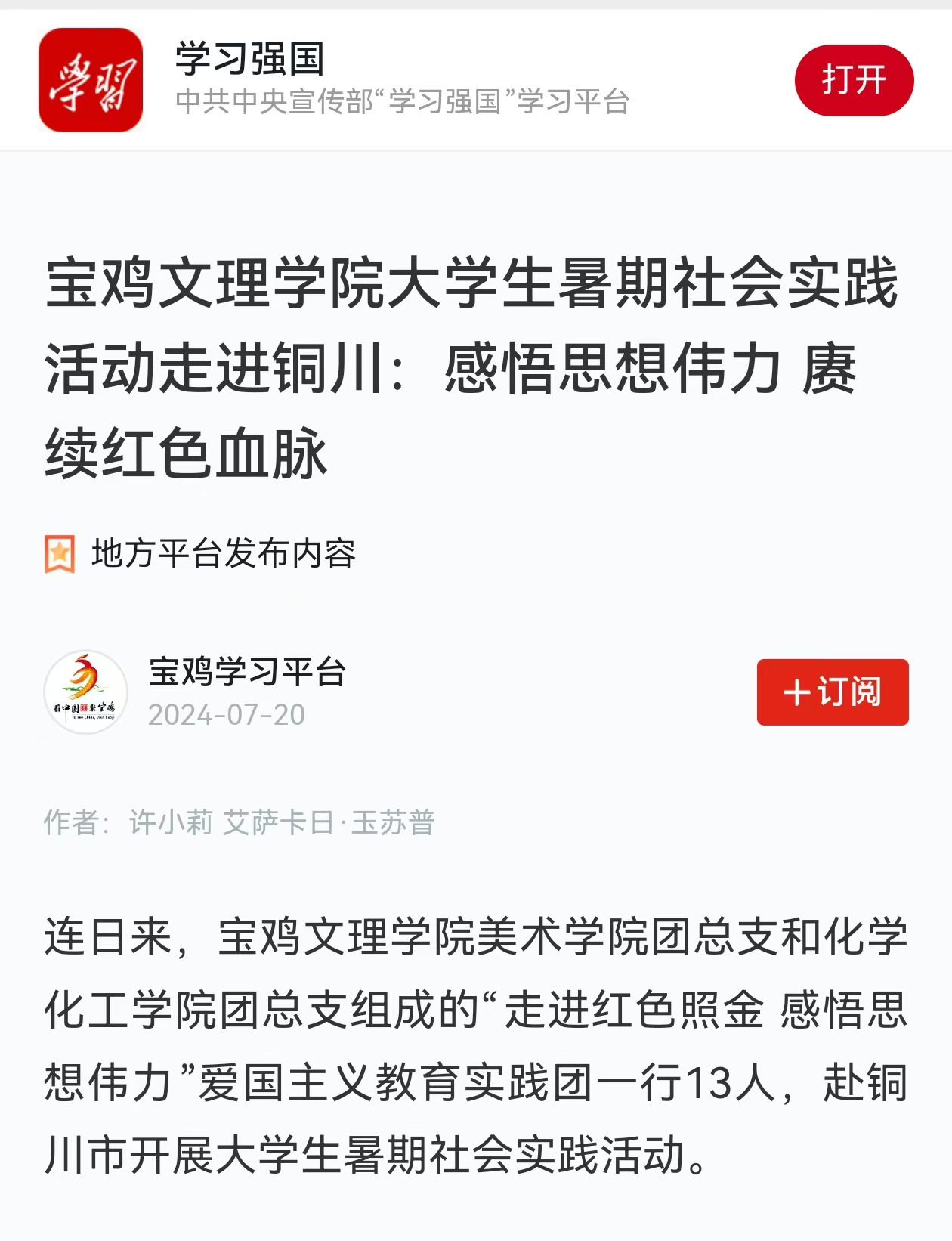 1.学习强国——宝鸡学习平台 链接:https://article.xuexi.cn/articles/index.html?art_id=4825538054198537953&item_id=4825538054198537953&cdn=https%3A%2F%2Fregion-shaanxi-resource&study_style_id=feeds_opaque&pid=&ptype=-1&source=share&share_to=wx_single