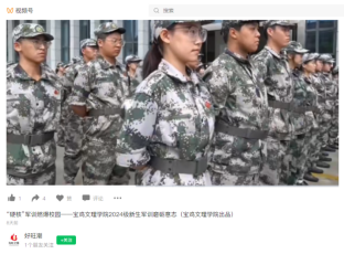 微信视频——好旺潮 视频名称:“硬核”军训燃爆校园——宝鸡文理学院2024级新生军训磨砺意志(宝鸡文理学院出品)