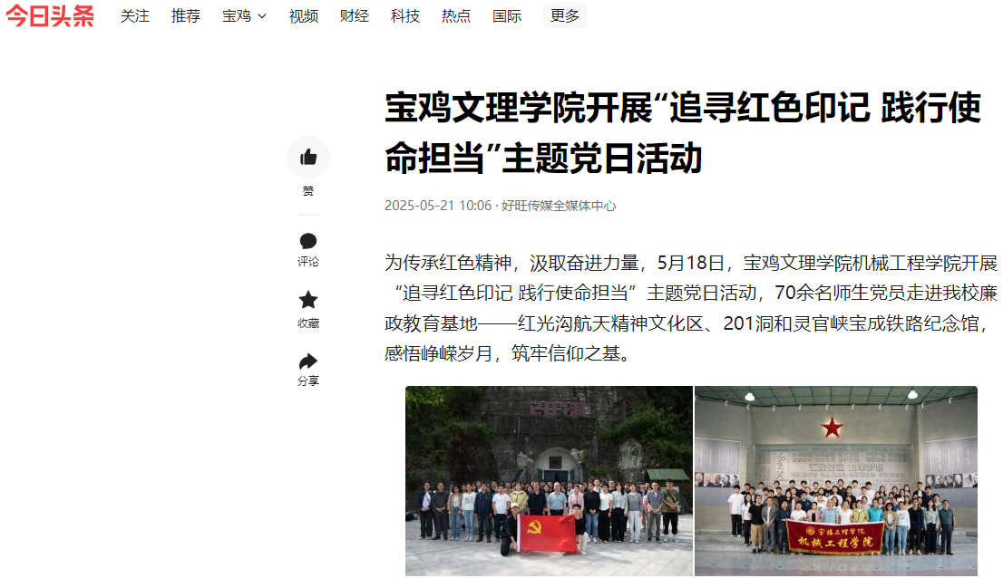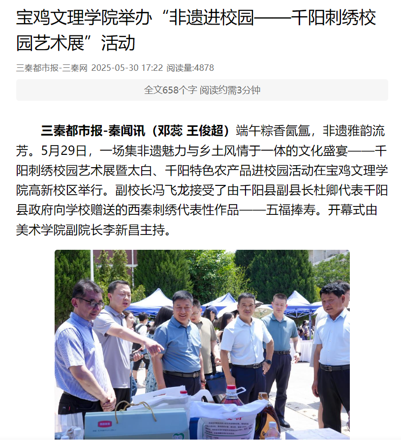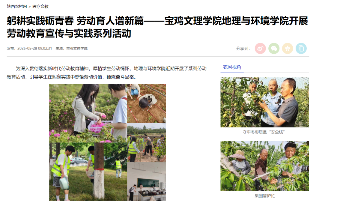 1.陕西农村网-宝鸡文理学院 链接:https://www.sxncb.com/2025-05/28/content_11191964.html