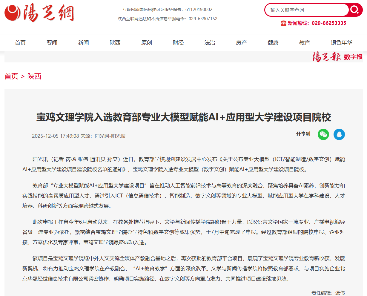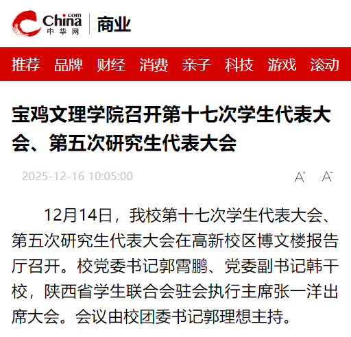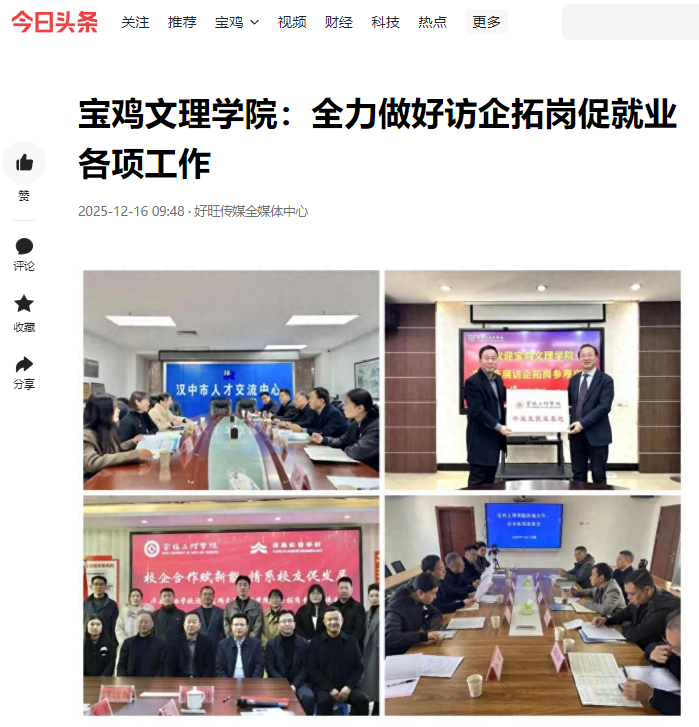 近日,学校召开第十七次学生代表大会、第五次研究生代表大会,入选教育部专业大模型赋能AI+应用型大学建设项目院校,全力做好访企拓岗促就业各项工作,“绿色无毒 法润三秦”百场行关中专场走进我校,“非物质文化遗产景观与地方认同建构”学术研讨会在学校召开等活动引起陕西教育信息网、阳光网、三秦都市报、起点新闻、视界观、中华网、今日头条等多家媒体广泛关注和报道。