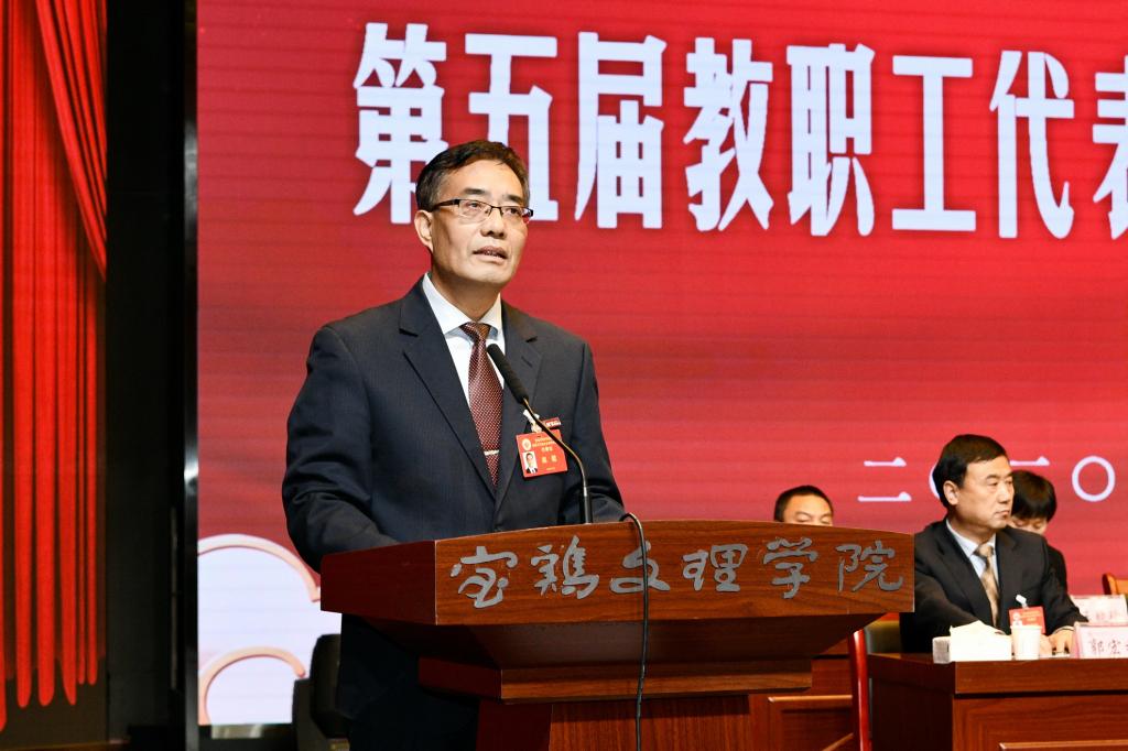 赵健指出,2021年是“十四五”发展的开局之年,是创建高水平大学的决胜之年,也是加快追赶超越的重要之年。他就做好2021年工作强调:一要加强民主管理,进一步发挥教代会的重要作用。教代会是教职员工依法参与学校民主管理和民主监督的基本形式,是学校治理体系建设的重要力量,在推进民主管理、促进科学决策、维护教职员工合法权益、建设和谐校园等方面发挥着重要作用。要充分发挥教代会的基本职能、教代会的桥梁纽带作用和凝心聚力作用,团结教职员工为学校事业发展、为个人幸福生活不懈奋斗。二要统一思想认识,切实凝聚起推动发展的强大合力。面对疫情防控的严峻形势,面对高等教育激烈竞争的态势,面对陕西经济欠发达、高校数量又多的困境,面对我校更名大学和蟠龙校区建设两个“硬事”同时摆在面前的现状,全校上下要统一思想、加快发展,解放思想、创新思维,坚定信心、敢于胜利,化危为机、危中寻机、乘势而上、借势而为,努力推动学校事业实现高质量发展。三要狠抓工作落实,确保学校“十四五”开好局起好步。学校“十四五”发展规划明确了学校发展定位和发展目标,描绘了未来五年的发展蓝图。全校上下要“弹好钢琴”、善于谋划、统筹兼顾,要“钉好钉子”、脚踏实地、久久为功,要做好垂范、身先士卒、以身作则,登高望远,勇挑重担,努力把规划变为现实。