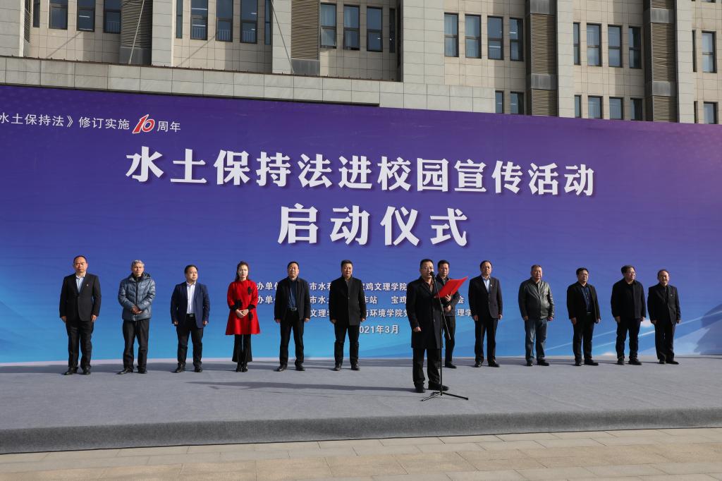 水土保持法进校园宣传活动启动仪式于3月22日上午在我校高新校区博文楼南广场举行。校党委副书记栾宏、宝鸡市水利局党组书记、局长王雪峰等出席启动仪式。启动仪式由宝鸡市水利局党组成员、二级调研员江先武主持。
