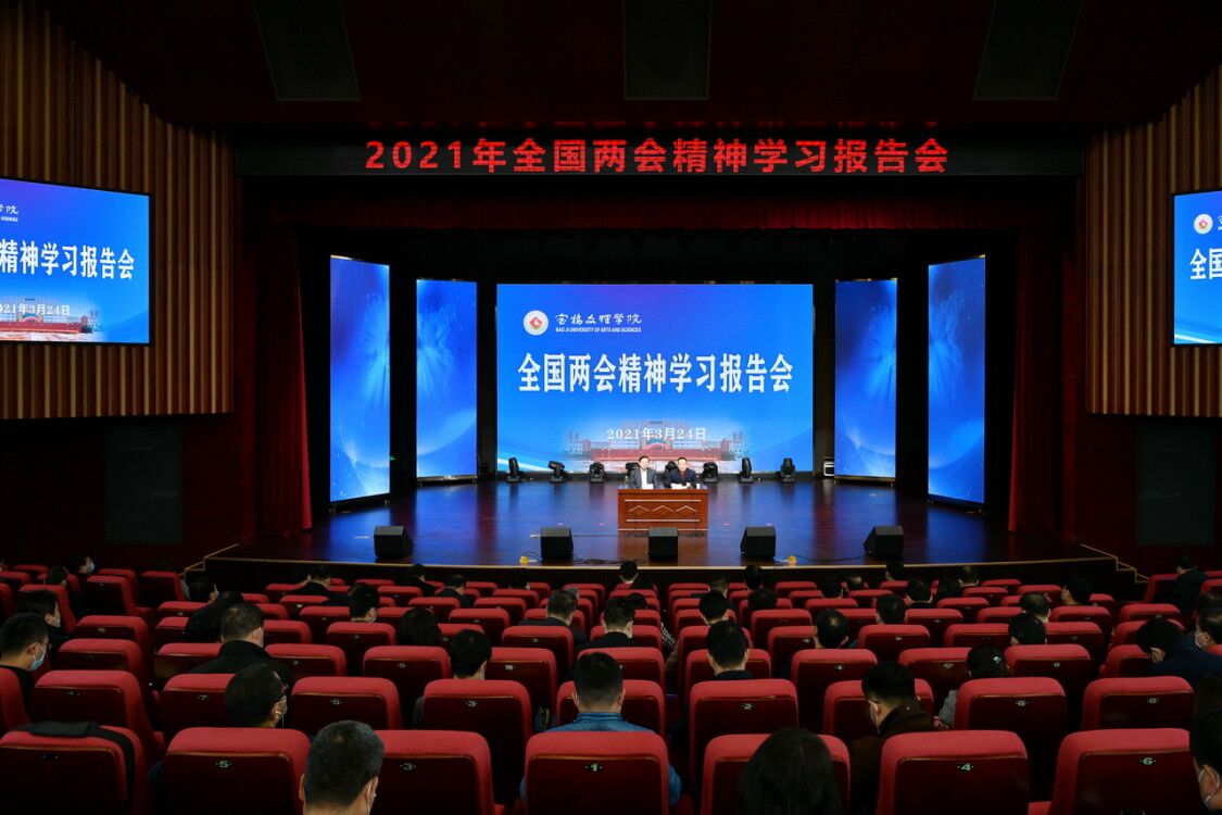 3月24日下午,我校在高新校区博文楼报告厅举办全国两会精神宣讲报告会。校领导,副处级以上干部、党支部书记、思政课教师、师生党员代表参加了报告会。报告会由校党委副书记栾宏主持。