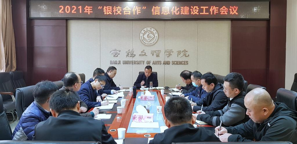 会上,中国银行宝鸡分行宝鸡文理学院支行行长王晋宣读了《“银校合作”项目招标采购及资产管理细则》及2021年“银校合作”第一批建设项目立项通知。网络与信息技术管理处处长马旺华对2021年“银校合作”第一批建设项目相关事宜作了详细说明。