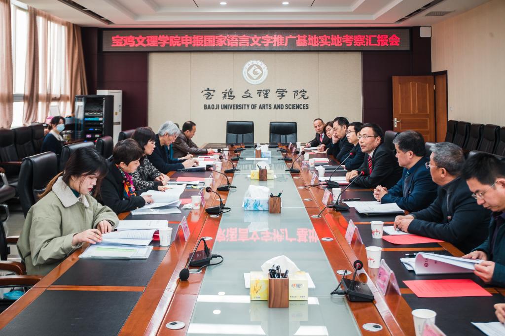 我校申报国家语言文字推广基地实地考察工作汇报会在高新校区图书馆801会议室举行。校长郭霄鹏、宝鸡市教育局副局长王建昌出席会议。会议由副校长王富平主持。