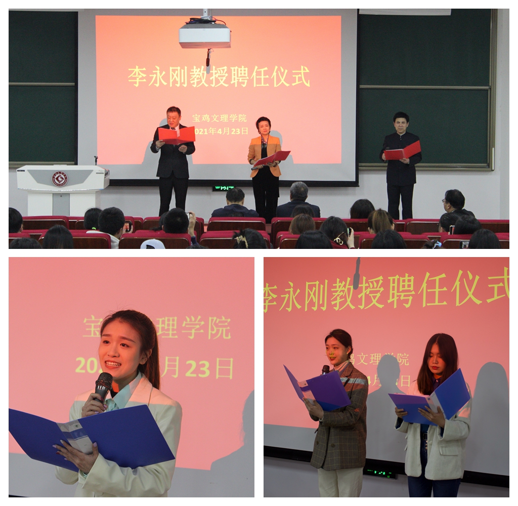 4月23日下午,陕西著名诗人李永刚教授聘任仪式在博文楼副105报告厅举行,党委副书记栾宏出席聘任仪式并为李永刚教授颁发聘书。陕西省播音主持委员会常务副主席凌江、陕西省播音主持委员会常委王芳、西安外国语大学播音与主持艺术专业主任樊强,我校学科建设与研究生教育管理处负责人及文学与新闻传播学院200余名师生参加了聘任仪式。聘任仪式由文学与新闻传播学院院长兰拉成主持。