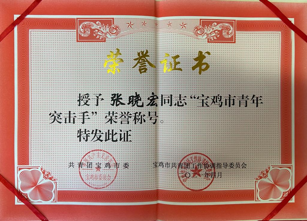 4月28日下午,宝鸡市召开纪念五四运动102年暨建团99周年大会。我校团委宣传部部长张晓宏被共青团宝鸡市委、宝鸡市共青团工作协调指导委员会授予2020年“宝鸡市青年突击手”称号。