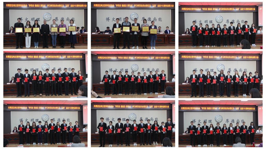 校团委副书记马睿宣读了《共青团宝鸡文理学院委员会关于开展“学党史 强信念 跟党走”学习教育的通知》。校团委副书记赵昕宣读了《关于表彰2020年度共青团工作先进集体和先进个人的决定》。化学化工学院团总支书记郑雅月、文学与新闻传播学院2018级播音与主持艺术2班学生魏锴宸分别代表先进集体和先进个人发言,团学青年纷纷表达了对学校的感激之情,表示今后将勇于担当青年责任,努力成长成才,助力学校建设发展。与会领导分别为获奖集体和个人代表颁发了荣誉证书。