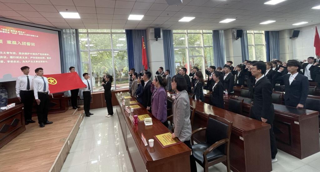 会上,全体成员面对鲜艳的团旗重温入团誓词,用铮铮誓言表达青年之心,践行青年担当,唤醒入团时的那份真诚与热情,延承“爱国、科学、民主、进步”的“五四”精神,重燃艰苦奋斗、昂扬向上的激情。随后,全体与会人员高声齐唱《光荣啊,中国共青团》。