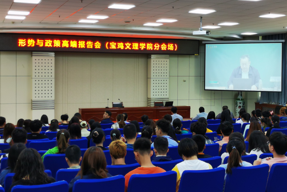 5月23日上午,我校组织师生代表在高新校区木铎厅观看了由省委教育工委主办的“形势与政策高端报告会”网络直播。