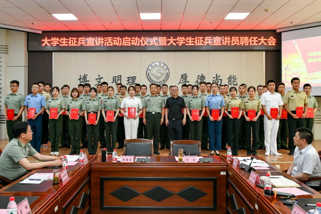 会上,学工部、研工部、招生就业处等相关部门负责人宣读了大学生征兵宣讲活动及大学生征兵宣讲员聘任大会的有关通知。大学生宣讲员代表、2018级退役学生、我校教育学院应用心理学专业林敏同学分享了自己应征入伍的初衷、两年军旅生涯中的感悟和收获。