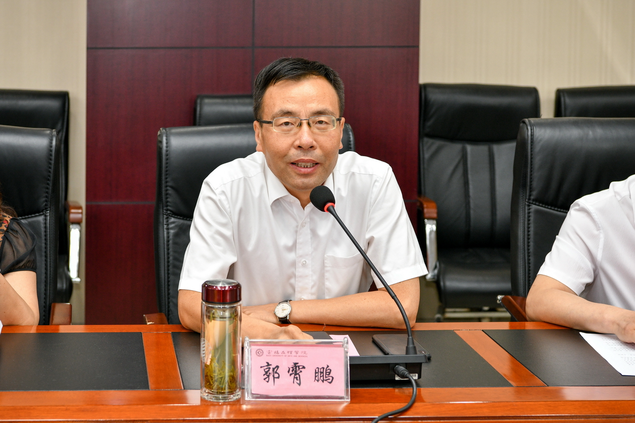 郭霄鹏对张炜一行来我校检查调研征兵工作表示热烈欢迎,并介绍了我校的发展历程、专业设置、师资队伍、人才培养、国防教育、武装部征兵工作等方面情况。他希望宝鸡军分区和渭滨区有关领导对我校大学生征兵工作多提宝贵意见,为学校能够顺利完成全年大学生征兵任务、加强人才培养工作献计献策,并感谢宝鸡军分区和渭滨区长期以来给予学校关心支持。