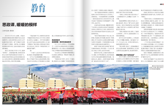 中共陕西省委机关刊物《当代陕西》2021年第11期以“思政课,暖暖的模样”为题,从“思政课老师,自身要像一条欢快流动的河”“思政课堂,决非‘坐而论道’”“思政课程,不光是一门‘功课’”“思政工作,也有多种打开方式”等四个方面对我校思政课建设进行了全方位报道。(党委宣传部 文/韩恩强 审核/冯飞龙)