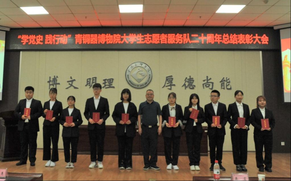 6月24日晚,我校在甘棠厅举办了“学党史 践行动”青铜器博物院大学生志愿者服务队20周年总结表彰大会。校党委副书记栾宏、副校长王富平、宝鸡青铜器博物院院长陈亮、副院长康军建、宣教部副主任王睿等出席大会。大会由2019级志愿者刘金榕主持。