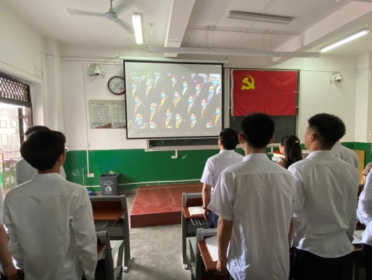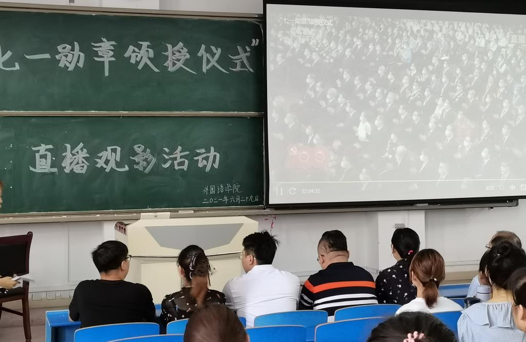 6月29日上午10时,庆祝中国共产党成立100周年“七一勋章”颁授仪式在人民大会堂隆重举行。中共中央总书记、国家主席、中央军委主席习近平颁授“七一勋章”并发表重要讲话。党中央首次评选颁授“七一勋章”隆重表彰一批为党和人民作出杰出贡献,创造宝贵精神财富的党员。我校外国语学院、电子电气工程学院、计算机学院等单位组织党员师生观看“七一勋章”颁授仪式。