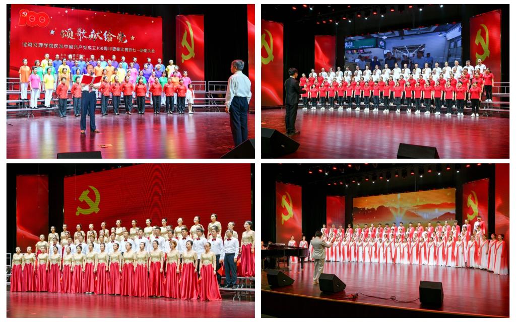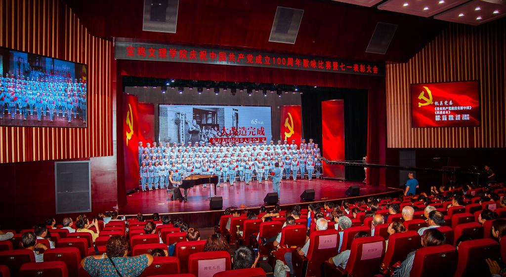 全校21个二级单位党委、党总支参赛曲目分别由必唱歌曲《没有共产党就没有新中国》和一首选唱歌曲组成。《四渡赤水》《黄河大合唱》《唱支山歌给党听》《不忘初心》《走向复兴》等一首首激动人心的歌曲唱出了宝文理师生忠诚党、热爱党的真挚情怀。