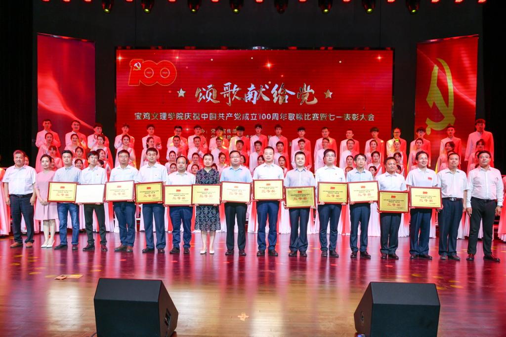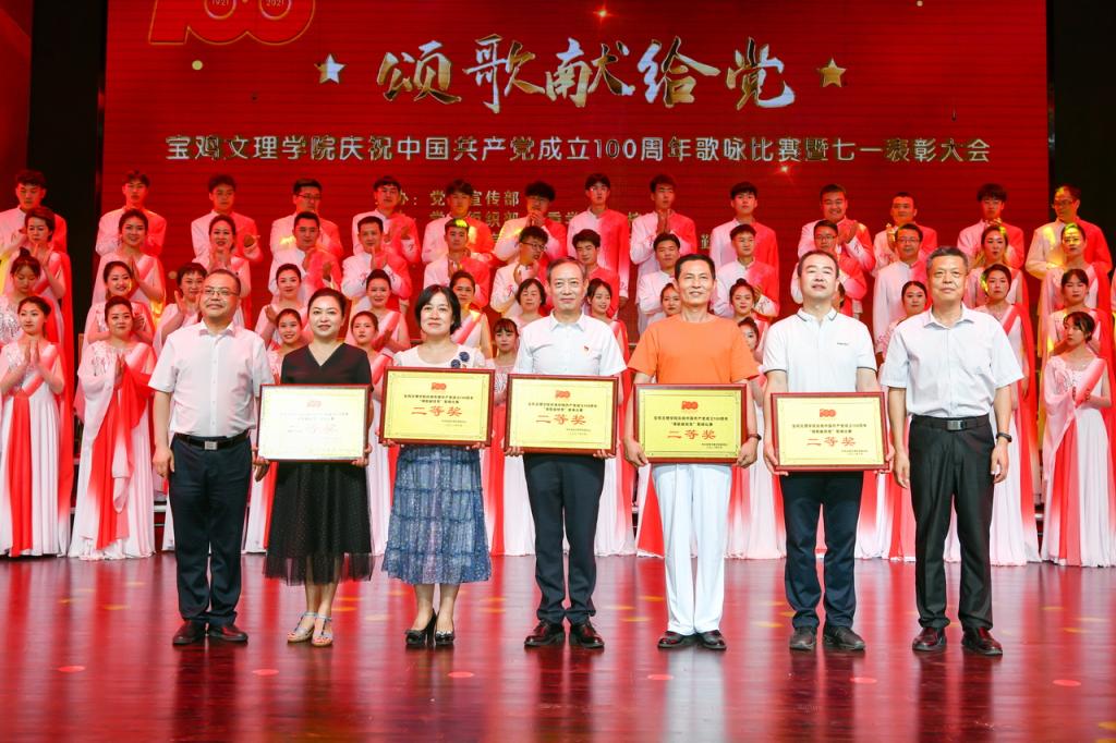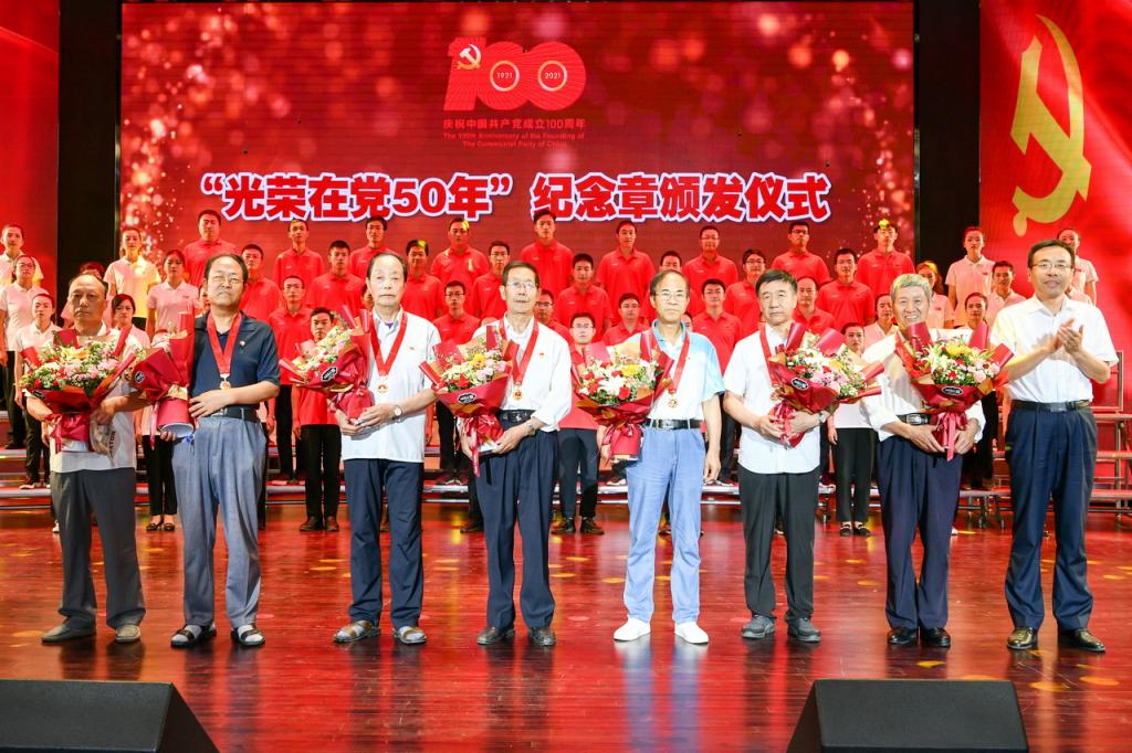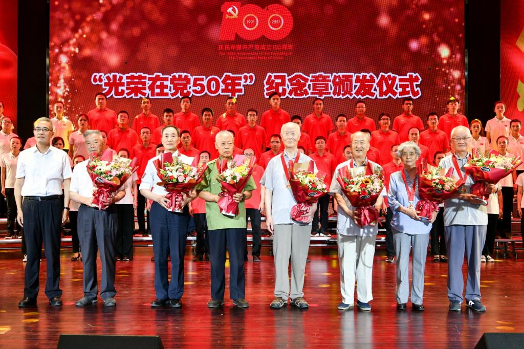 6月29日下午,我校在博文楼报告厅举办庆祝中国共产党成立100周年歌咏比赛暨七一表彰大会。师生欢聚一堂,讴歌党的丰功伟绩,献礼党的百年华诞。大会颁发“光荣在党50年”纪念章,表彰优秀共产党员、优秀党务工作者和先进基层党组织。