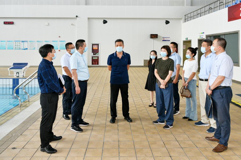 段恒春实地查看了场馆内部各项设施运行和场馆周边环境情况,听取了后勤管理处、保卫处、校团委三个部门负责人关于十四运会水球比赛及残特奥会保障工作汇报,详细了解了十四运会水球比赛及残特奥会的后勤服务、经费保障和使用、安全保障、志愿者服务、疫情防控等工作。