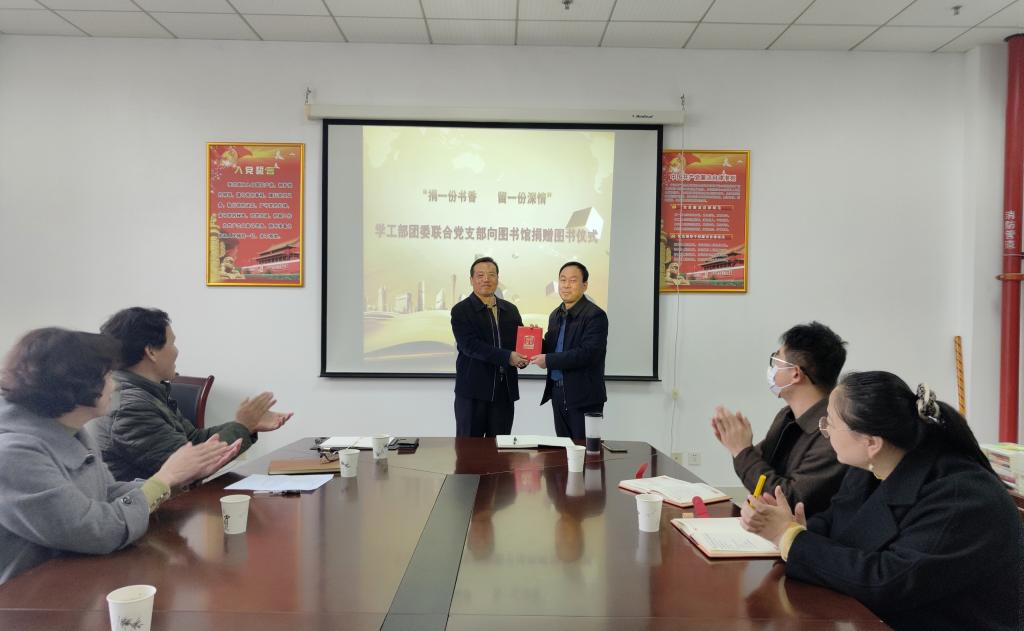 10月27日下午,我校学工部团委联合党支部向图书馆捐赠图书仪式在高新校区图书馆501会议室举行,副校长杨子元出席捐赠仪式并为学工部团委联合党支部颁发了捐赠证书。机关党委、学工部、团委、图书馆等单位部分人员参加了捐赠仪式。捐赠仪式由图书馆党总支书记、馆长刘崇学主持。