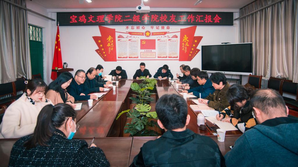 会上,机械工程学院党委书记李建峰,计算机学院党委副书记、副院长任海卫,电子电气工程学院党委副书记、副院长张锐,物理与光电技术学院党委副书记、副院长陈冠男分别从主要做法与成绩、存在问题与不足、改进措施与建议等方面汇报了本学期校友工作。财务处处长赵国政介绍了《宝鸡文理学院捐赠奖励办法(试行)》出台的背景和意义,并领学了该文件。物理与光电技术学院院长钱郁、机械工程学院院长王肖烨、计算机学院院长张光南、电子电气工程学院主持工作副院长王晓利围绕如何做好校友工作进行了交流发言,表示将积极联系本院校友,不断加大宣传力度,充分挖掘校友潜力,切实加强合作交流,热情服务广大校友,努力传承校友文化,持续强化校友工作的广度和深度。党委学生工作部(学生处)部长(处长)冯森、招生就业处处长范英、校团委副书记杨昕结合分管工作,对校、院校友工作提出了意见建议,希望充分发挥校友班主任、历届团总支学生会干部作用,边联系、边合作,让校友参与合作项目、研学活动等,培养在校学生校友意识,激发爱校荣校情怀。物理与光电技术学院校友工作信息员陈雄刚、机械工程学院校友工作信息员封昭、电子电气工程学院校友工作信息员李倩分别交流了自己对校友工作的想法和建议,表示将按照学校、学院校友工作安排,积极选聘教师、班主任加入校友工作联络之中,提高师生员工对校友工作的关注度和认可度。