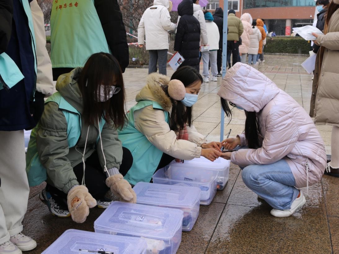12月23日18:00,校党委学工部、校团委向各学院团总支发起志愿者招募令后,广大青年学子主动请缨,学生党员来了、入党积极分子来了、青年马克思主义者培养工程学员来了、团干部来了、团员来了……1个半小时之内快速集结了300余名志愿者。为了保障志愿者人身安全,1个小时内为应招志愿者做完了核酸检测,为开展志愿服务做好了准备。
