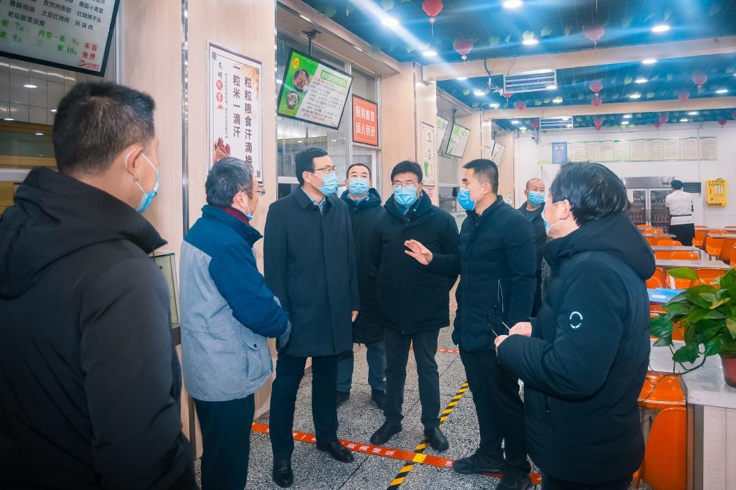2022年1月7日下午,校长郭霄鹏、副校长韩干校一行检查学校后勤保障工作情况,并慰问一线后勤职工。