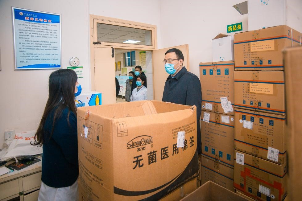 郭霄鹏一行先后来到石鼓校区、高新校区学生食堂、核酸检测点、校医院、幼儿园、学生公寓、购电室、超市、水果店、快递服务中心等场所,重点对防疫物资储备、食堂就餐环境、后厨加工间、食材库房、洗涤间等进行了详细查看,对超市、水果店等进行了认真检查,对公寓服务工作、水电保障等工作进行了现场查看和询问指导。