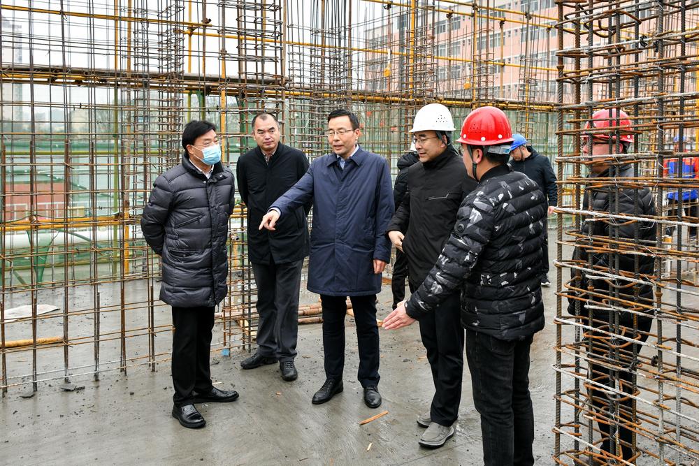 2月17日,校长郭霄鹏检查高新校区教师公寓楼建设工作。副校长韩干校一同检查。